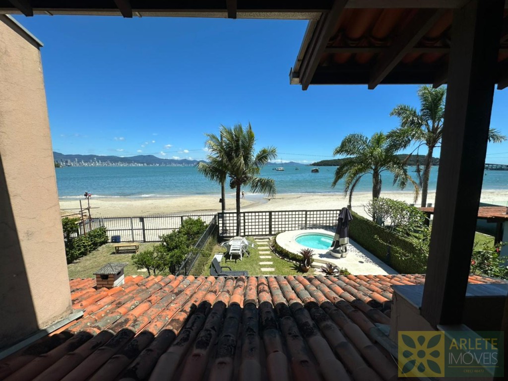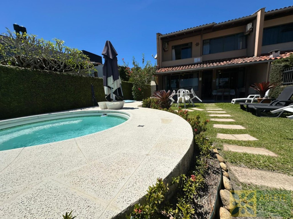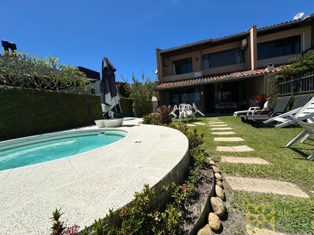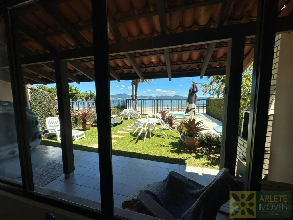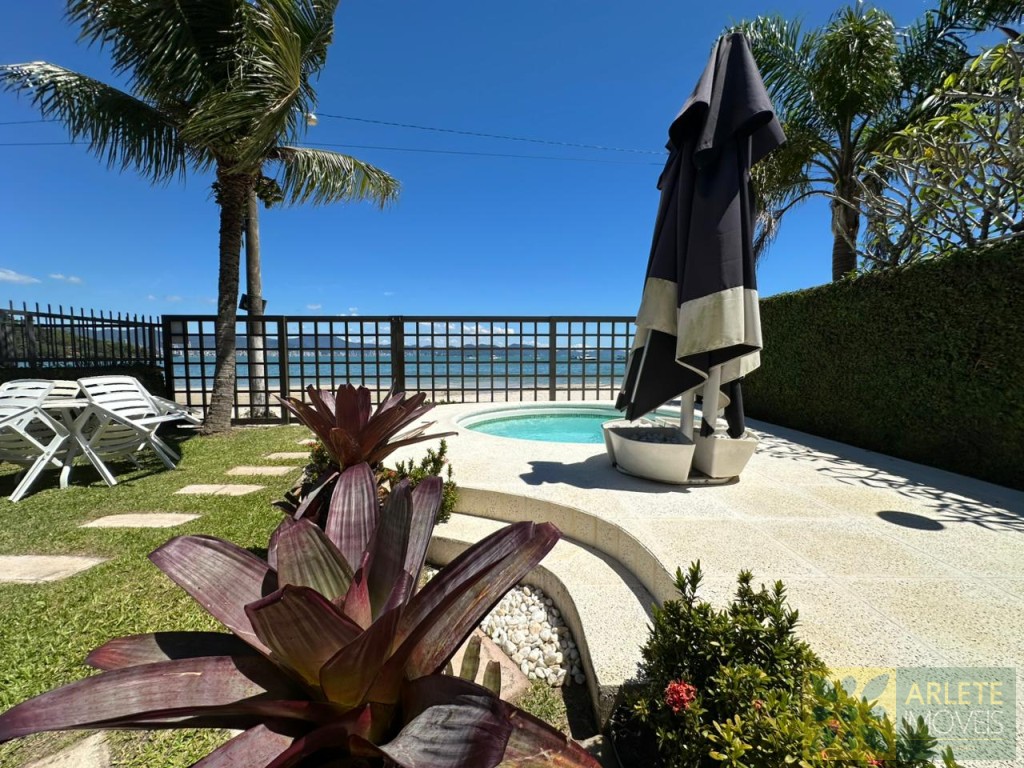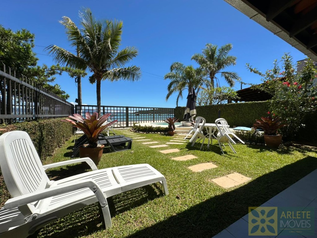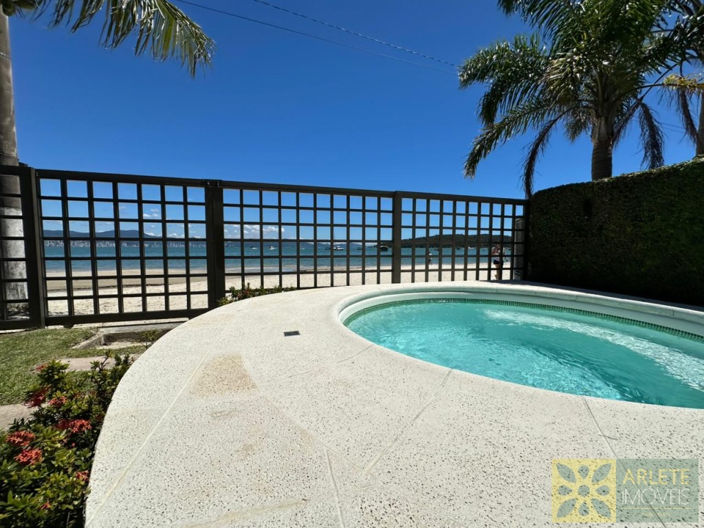 AGRADÁVEL RESIDÊNCIA BEIRA MAR NO CENTRO DE PORTO BELO. POSSUI UM BELO JARDIM COM QUIOSQUE E PISCINA.