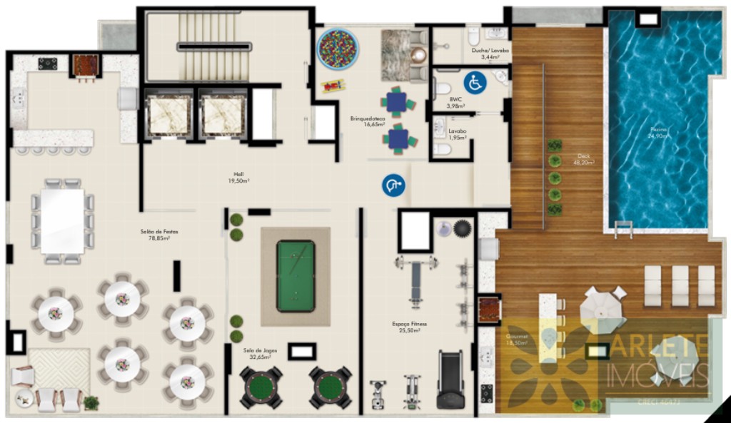 Brinquedoteca, Academia, Salao de festas e salao de jogos